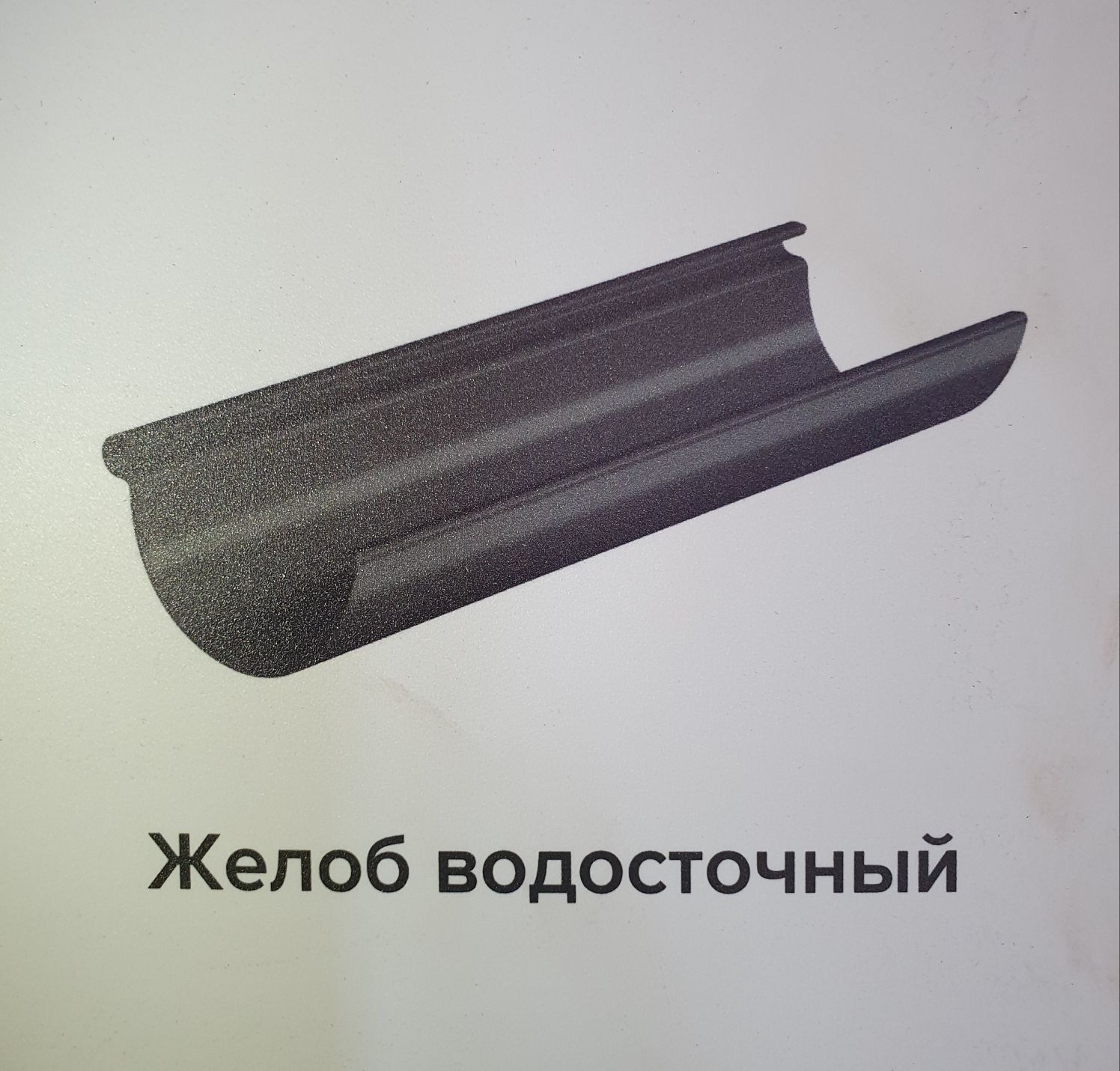 Желоб водосточный изготовлен из оцинкованной стали с 2-сторонним полимерным покрытием. Материал основы – качественная холоднокатанная сталь толщиной 0,55 мм. Цинкование горячим способом не менее 275 г/м2 (12-17 мкм), что обеспечивает надежную антикоррозионную защиту и длительный срок службы. Тип полимерного покрытия – полиуретан, толщиной не менее 40 мкм. Полимерное покрытие имеет наивысшую стойкость к ультрафиолету RUV4, а также высокую износостойкость.